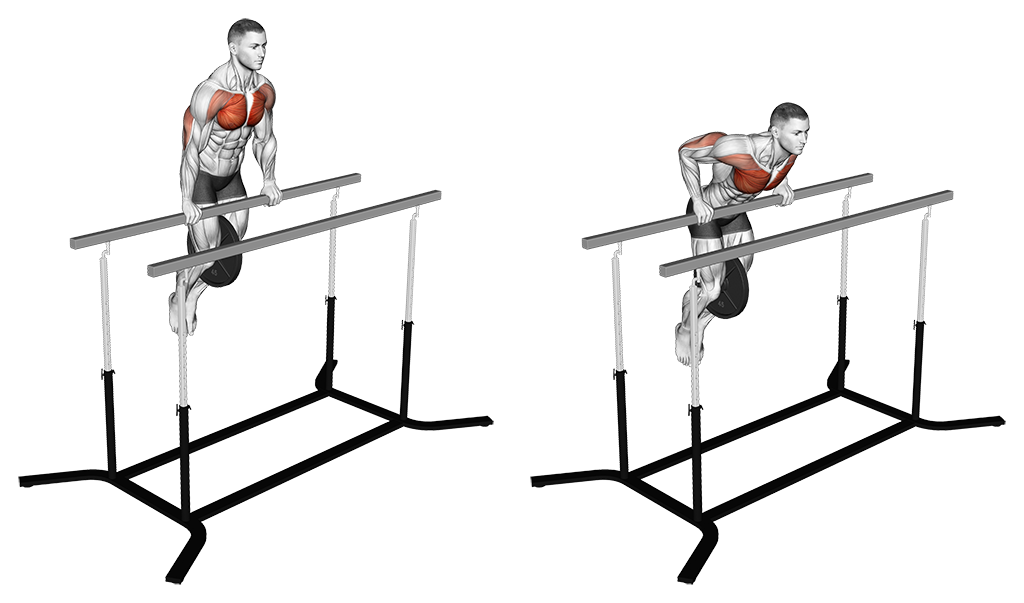 If you want even greater development, you should use bars on which you can also use a pronated, supinated or 45 degree grip as well as different widths for the grip as for example on adjustable dip bars. This allows for even greater strength of the muscles involved as well as bringing other muscles into play.