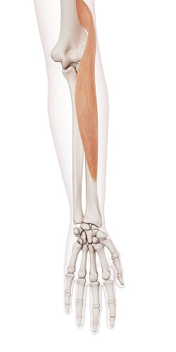 The muscle inserts into the distal radius near the styloid process, providing leverage for forearm movements.