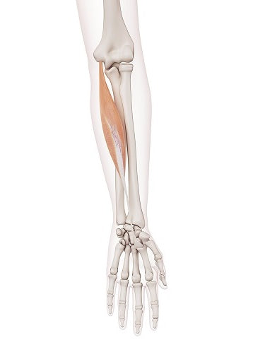 The muscle inserts into the base of the second and third metacarpal bones. This insertion site establishes a connection with the bones of the hand.