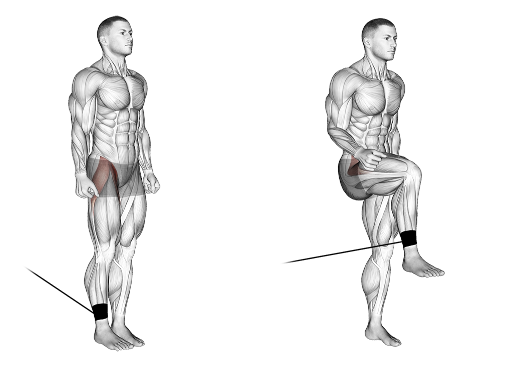 - Breathing: Inhale as you prepare for the movement and exhale as you bring the thigh toward the torso. Maintain a controlled and rhythmic breathing pattern throughout the exercise to support overall stability and focus.