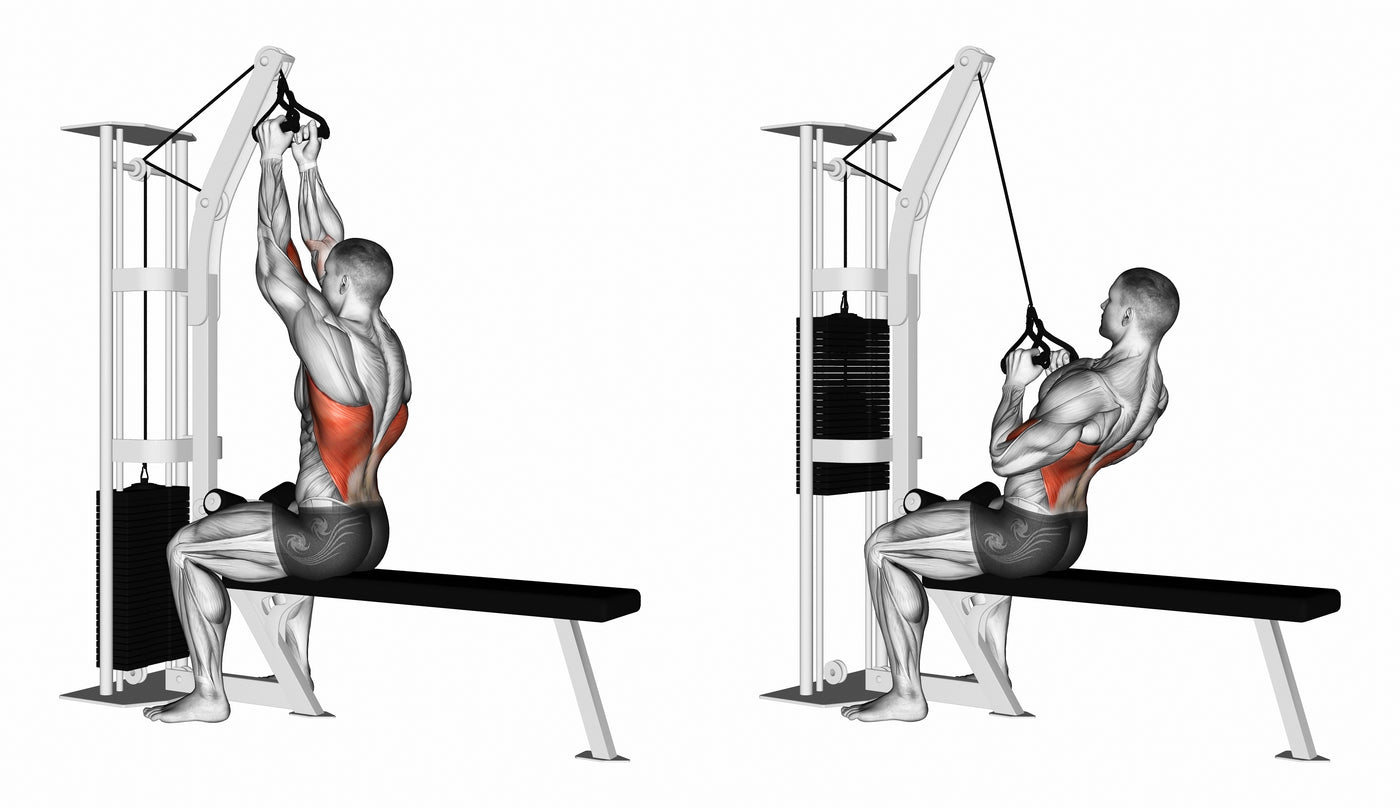• Position: Performed in a seated position on a lat pulldown machine, pulling a bar down in front or behind the neck.