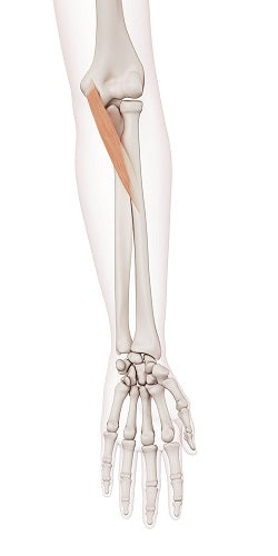 The muscle inserts into the midshaft of the radius. This insertion site establishes a connection with the forearm bone.