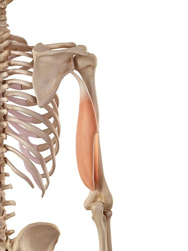 The long head of the triceps brachii, a substantial arm muscle, runs along the posterior aspect of the upper arm, contributing to powerful elbow movements.